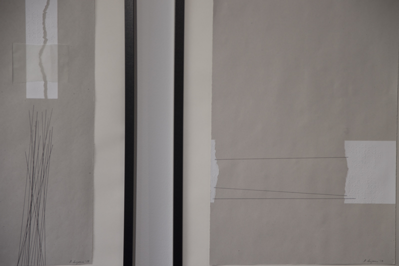 Durante los días del Laboratorio de Comunión trabajé sobre dos de sus piezas. Arañando cada momento libre para subir a la habitación (improvisado estudio) y mezclar mis papeles, mis recortes, mis caligrafías con sus imágenes. Siempre de forma reversible, con cierto vértigo, porque es fundamental el respeto al otro, a su obra, a sus elecciones. El resultado final lo disfrutamos todos en la exposición del último día. Junto a algunos collages de mi factura y formando una única instalación, sus dos fotografías, que ya no eran suyas ni tampoco mis dos obras. Eran algo nuevo más allá de la simple adición.