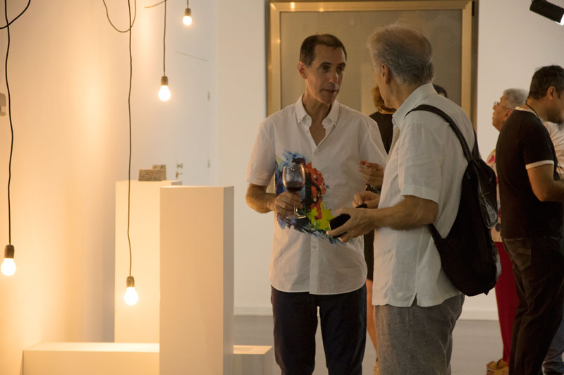 Un recorrido conjunto hasta llegar a la exposición en el que iba compartiendo las posibles piezas o el trabajo que iba realizando. Pero la prueba de fuego llegó con el montaje. Varios día que se alargaban y trastocaban cualquier horario razonable. En los dos la convicción de que nada podía ser fruto de un personalismo obcecado o de intereses que respondieran más a nuestro propio gusto o manera de entender las cosas que al bien de las obras o de la propia exposición. De este modo el montaje de las piezas, la distribución en la galería, la iluminación, el cartel, todo, cada detalle era sometido, de un modo natural, como método de trabajo, al microscopio de la comunión. A veces era yo el que dudaba de alguna solución a la que habíamos llegado o era él. Se trataba entonces de indagar, buscar qué era lo que no funcionaba o porqué. Probar, reiniciar, cambiar hasta llegar a aquello en lo que los dos estábamos plenamente seguros. En otros momentos nos sorprendíamos de cómo los dos llegábamos a una misma convicción por caminos distintos, pero que era la misma.