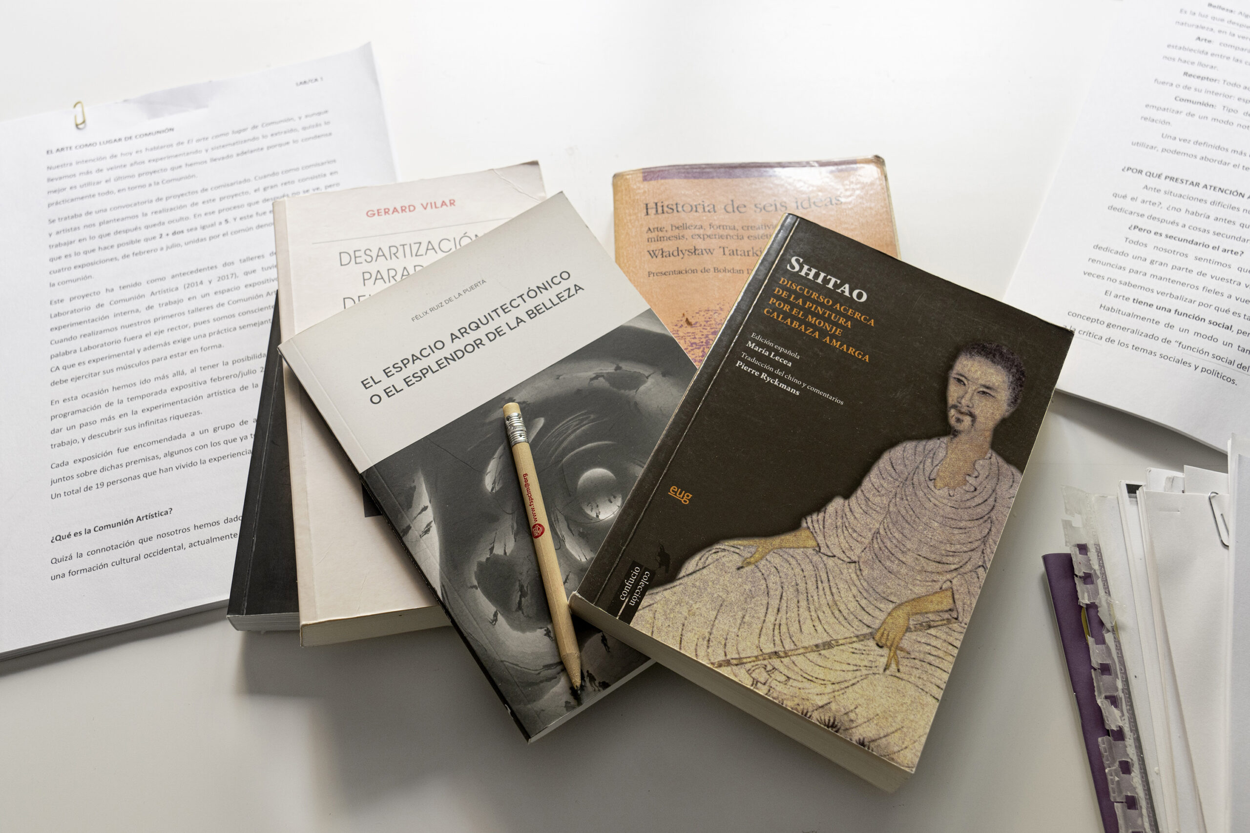 Así es, desde hace años, con distinta asiduidad nos reunimos. A veces el punto de interés es un artista determinado, una corriente estética, una exposición que alguno de nosotros ha visto o que proponer ver en grupo, a veces es un argumento sobre la creación o sobre su proceso. También pueden ser objeto de nuestras divagaciones una crítica artística, un artículo que a alguien le interpela, un libro o algunos capítulos extractados convenientemente. Partiendo del «pretexto», previamente conocido y trabajado sometemos al juicio mutuo nuestras apreciaciones, las conclusiones a las que llegamos de forma personal, las incomprensiones o las dificultades de abordaje al tema propuesto. Estas sesiones nos dan la oportunidad de profundizar en aspectos a los que de otro modo difícilmente hubiéramos llegado de motu propio. O descubrir puntos de vista ajenos por completo a nuestra forma de ver el arte. El enriquecimiento mutuo se multiplica, a menudo, a niveles inesperados y en muchas ocasiones el motivo de la sesión es solo el inicio de un recorrido que nos lleva a ámbitos que nunca nos habíamos planteado.