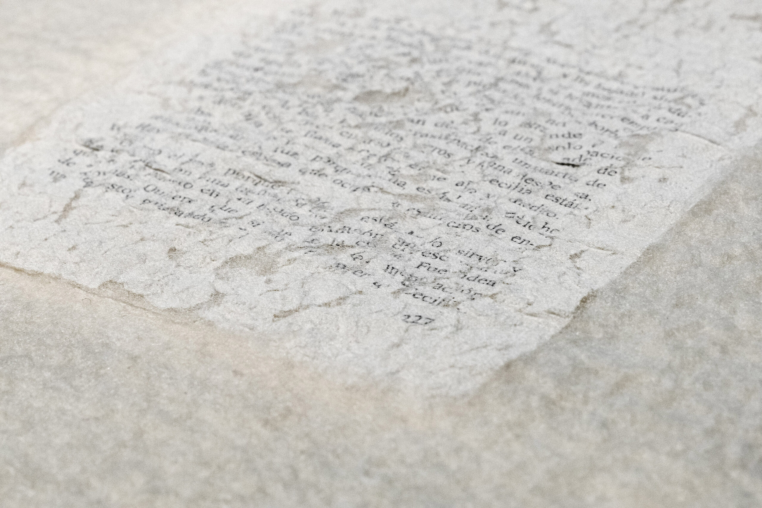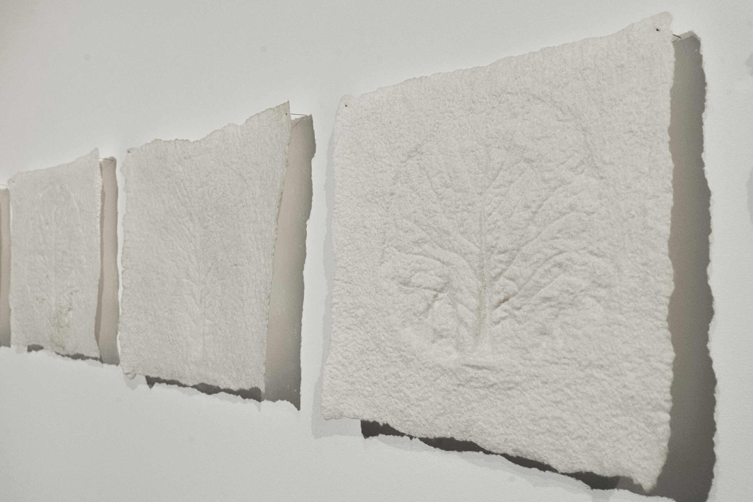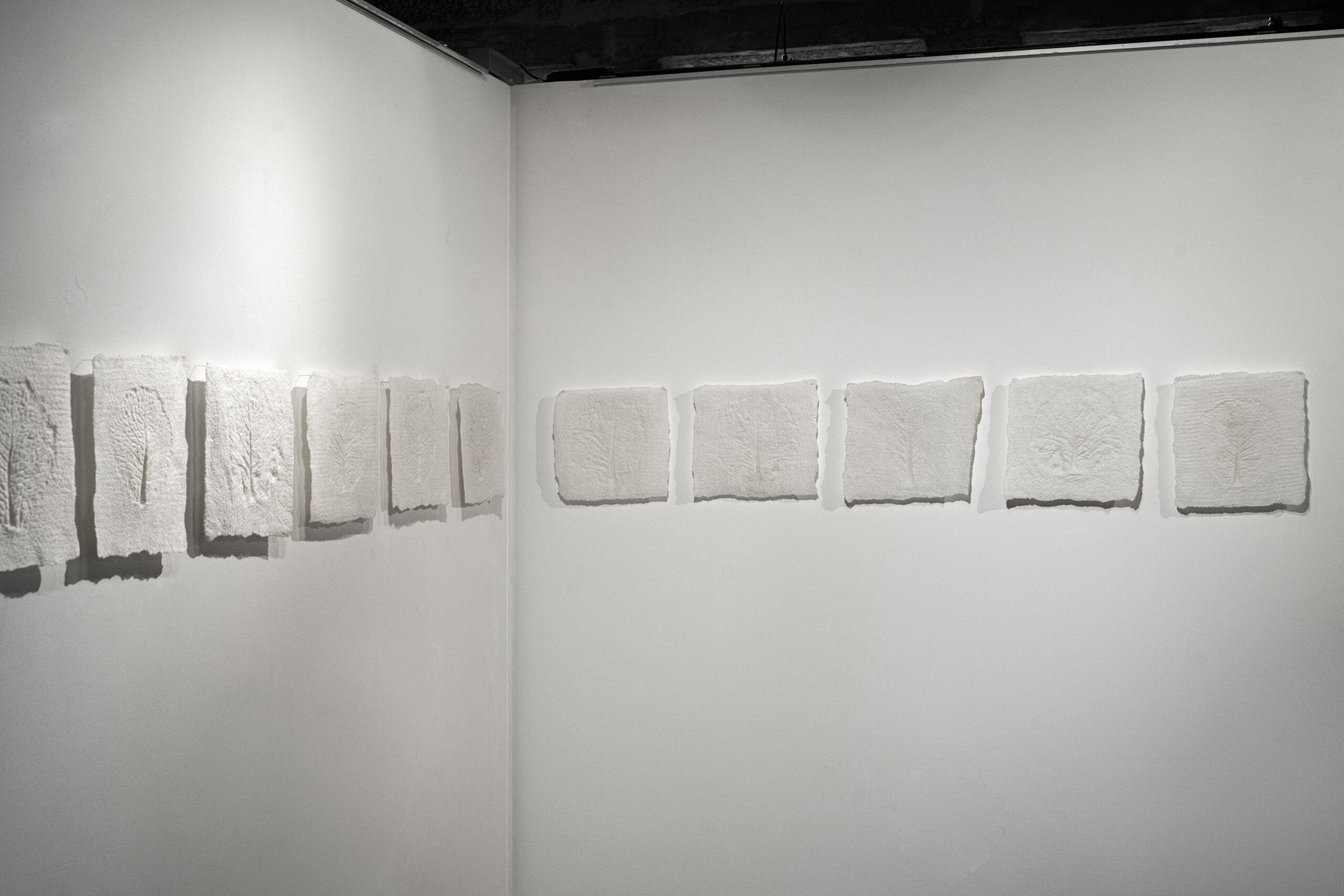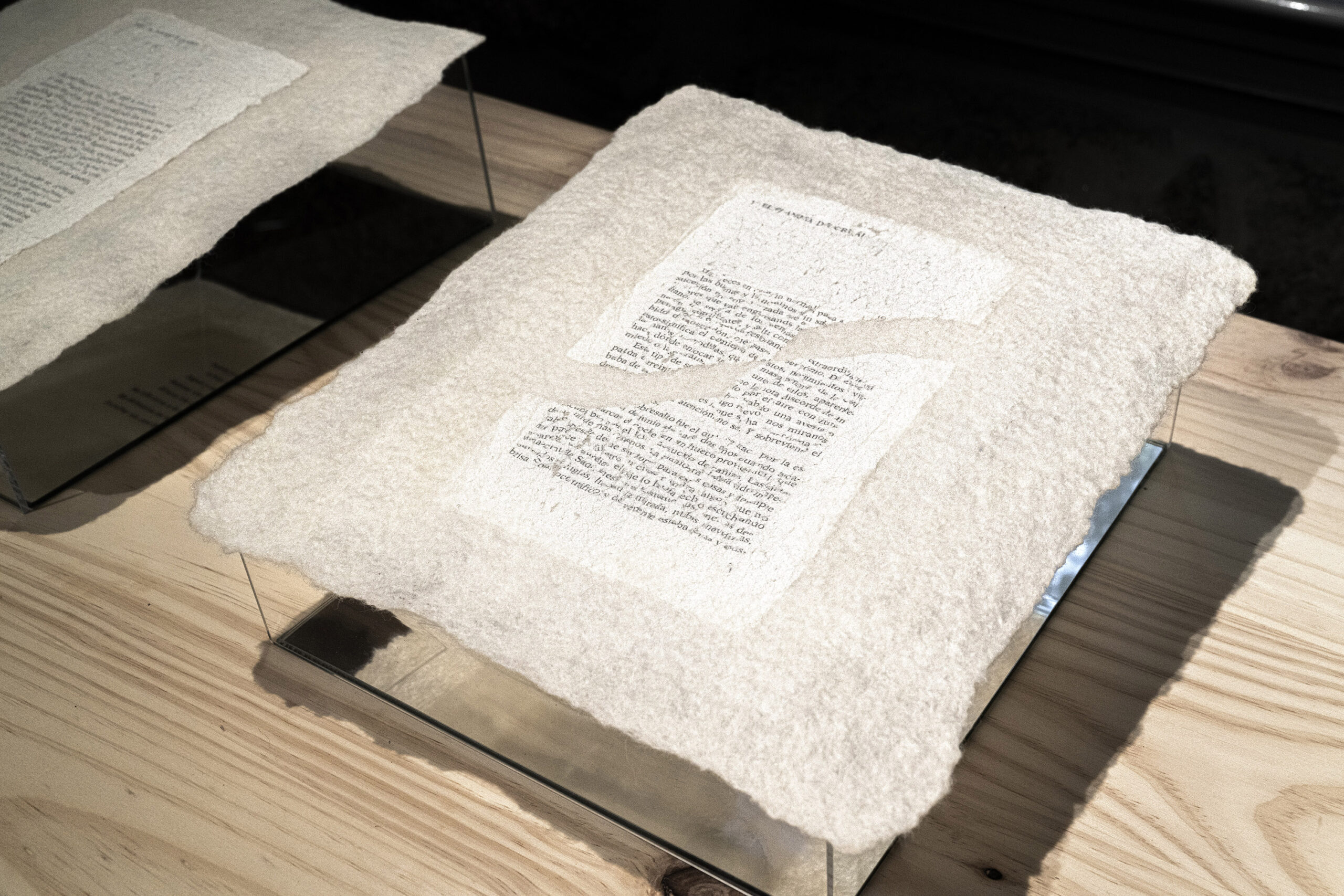 El poder contar con ellos fue un verdadero regalo. Cuando participo en una exposición colectiva muchas veces tengo la sensación de que los comisarios o montadores de la exposición no llegan a entender cómo se debe montar alguna de mis obras. El espacio de exposición fue una antigua fábrica de teñido de lana, maravilloso, pero con una presencia arquitectónica muy fuerte. Cuando llegamos a la sala donde se expondrían mis piezas empezamos a ver juntos el espacio, cómo colocarlas de nuevo para que se relacionaran con las otras obras, a mover focos para conseguir la mejor iluminación, a tapar marcas de la pared etc. Paulo e Ignacio hicieron suyas mis obras y construimos juntos el proyecto expositivo; tuve la sensación de que mis obras crecían.