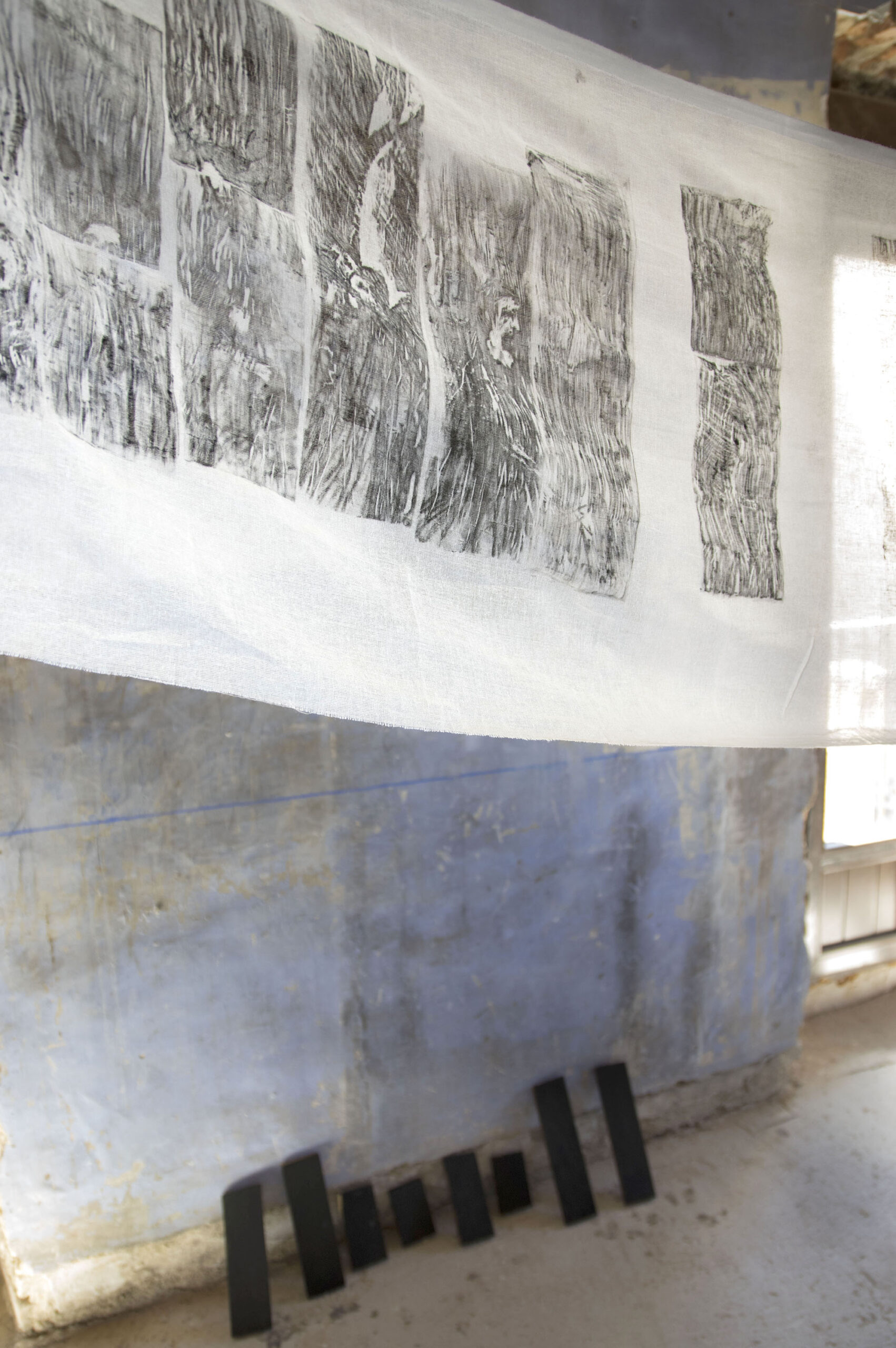 Dispusimos dos grandes salas en un edificio en proceso de rehabilitación que nos sirvieron de taller. Se trató de generar un «espacio experimental» en torno al diálogo de las obras que cada uno había traído consigo, o creado in situ, con el espacio y con el resto de las obras.